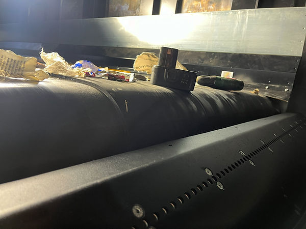 Pneumatic air pressure nozzle bar for blowing out the desired objects.