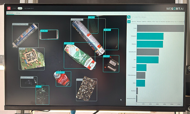 The Vision.Insights and a pneumatic sorting line plus conveyor belt and bonnet make up the complete Vision.Sort from WeSort.AI