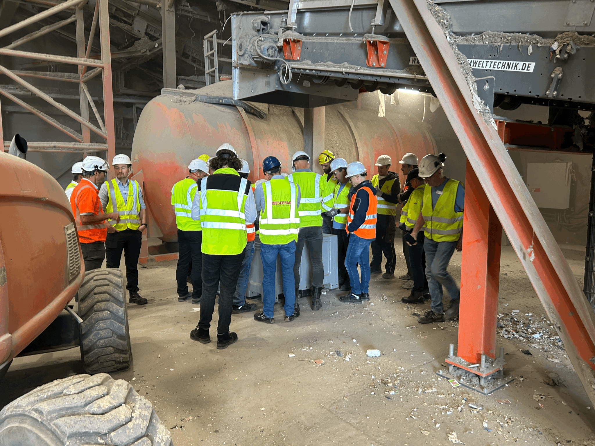 Participants included plant operators, equipment manufacturers, and recycling industry experts, all eager to see firsthand how our AI-powered technology automatically identifies and removes harmful objects – helping to prevent fires and recover valuable resources.